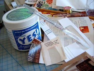 Here are the tools of my trade. I adoringly use Yes! Paste for all of my paper projects. And I reuse all kinds of paper and envelopes. Do you see my return address? That is a remnant of the postage kiosk stamp. It comes out of the self service machine as a sticker. And I found that I can make two self sticking return address labels with the leftover! I am hard core saving woman, but why not? It's easier and more efficient, too.